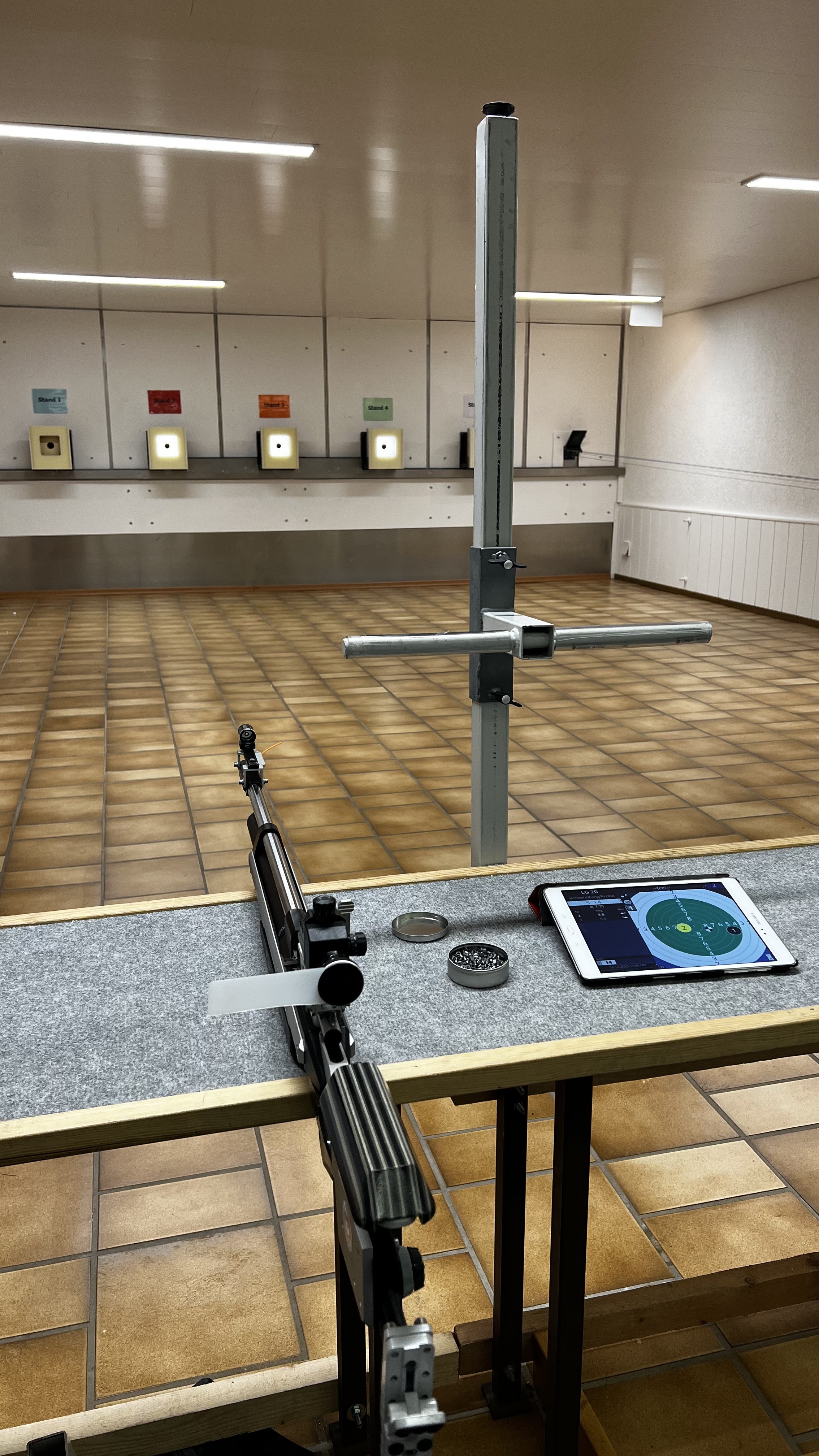 Hi-Tech pur: Die meisten Schützenvereine schießen noch auf schwarze Papierscheiben. Doch unser Schützenverein schießt auf Elektronik, das heißt: Keine Seile die überall im Raum verteilt hängen. Die Ergebnisse lässt man sich einfach auf dem Handy oder Tablett anzeigen.